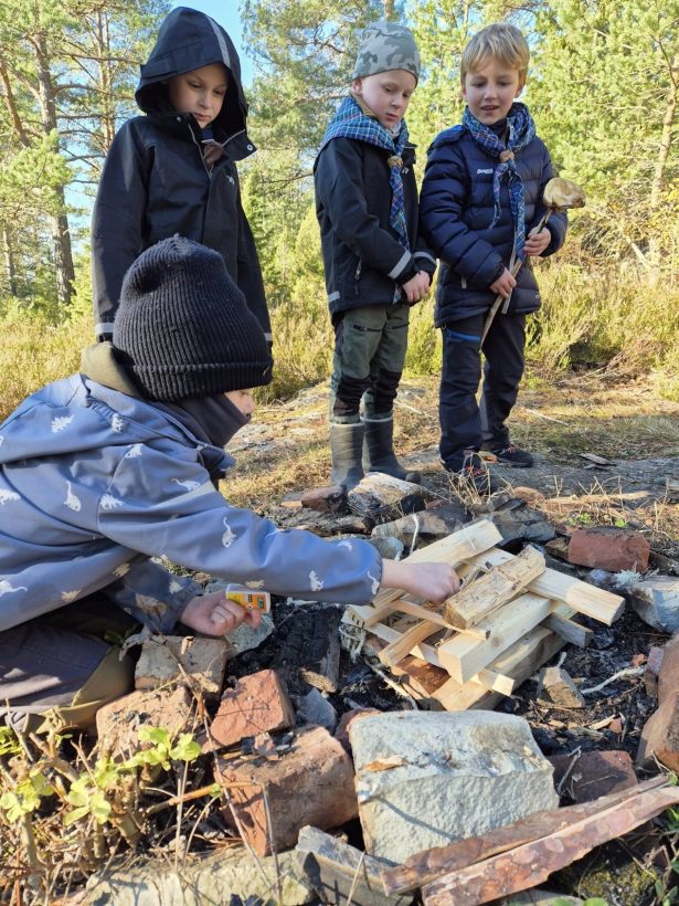 Bevere og småspeidere hadde også førstehjelp før de tok bålmerket. De fyrte opp for lunch og pannekaker med farge til alle.