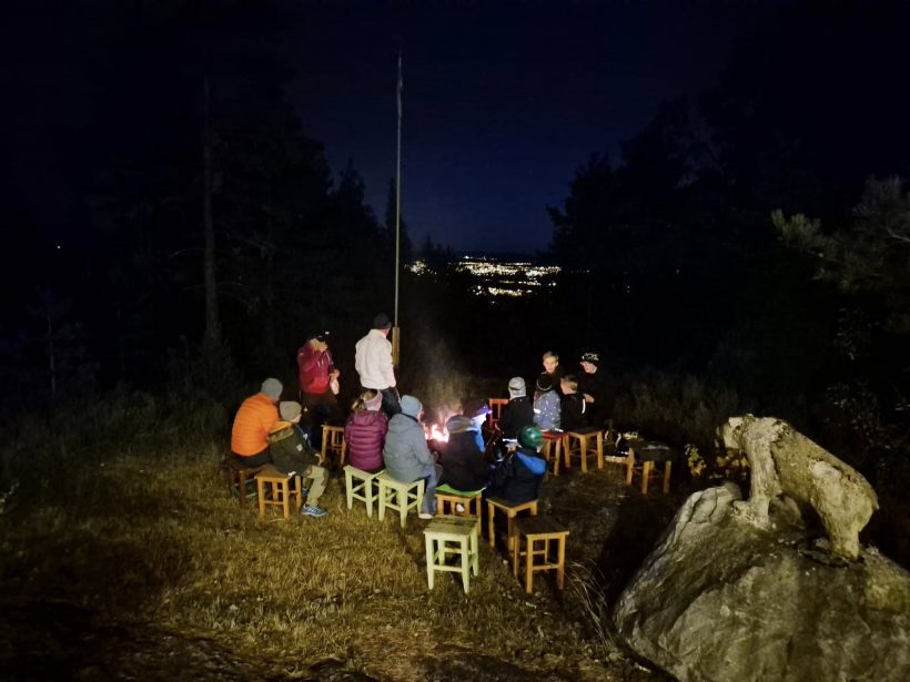 I oktober var vi på gruppetur. Gråkallen ønsket oss velkommen og voktet leirbålet når høstens overnattingstur på hytta startet på fredagskvelden. Vi startet lørdag med flaggheis etter frokost. Deretter var det aktiviteter. Troppen hadde førstehjelp og laget båre som ble testet. Godkjent!